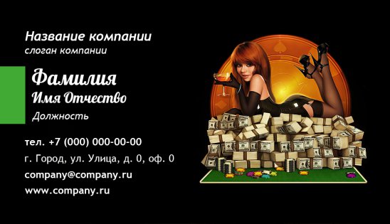 Удивительно, но взяв в руки небольшой прямоугольный «кусочек» бумаги или картона, ваши потенциальные клиенты решают, в каком заведении провести свой досуг. Не упустите возможность самостоятельно создать идеальную визитку. Наши визитки категории «Казино» - правильное вложение средств.